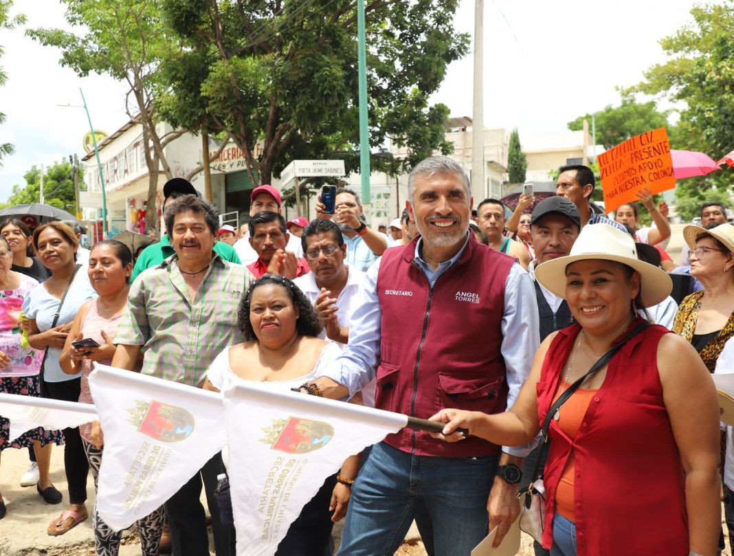 El secretario  de Obras Públicas del Estado, Ángel Torres, junto a colonos, dio el banderazo de arranque a la construcción del Boulevard Vida Mejor que beneficiará a automovilistas, transportistas y a más de cinco mil familias de la zona norte oriente de Tuxtla Gutiérrez.