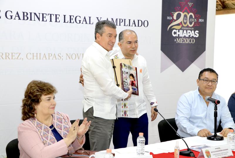 En tanto, la secretaria de Seguridad y Protección Ciudadana, Gabriela Zepeda Soto, agradeció la confianza y respaldo hacia las mujeres que formaron parte de este primer gabinete histórico paritario en Chiapas, el cual, dijo, no fue simulado sino concreto y efectivo. Mientras que el titular del Secretariado Ejecutivo del Sistema Estatal de Seguridad Pública (Sesesp), Sergio Alejandro Aguilar Rivera, aseguró que al frente de esta institución se realizaron grandes acciones, sobre todo de formación policial, rubro creado a iniciativa de este gobierno.
