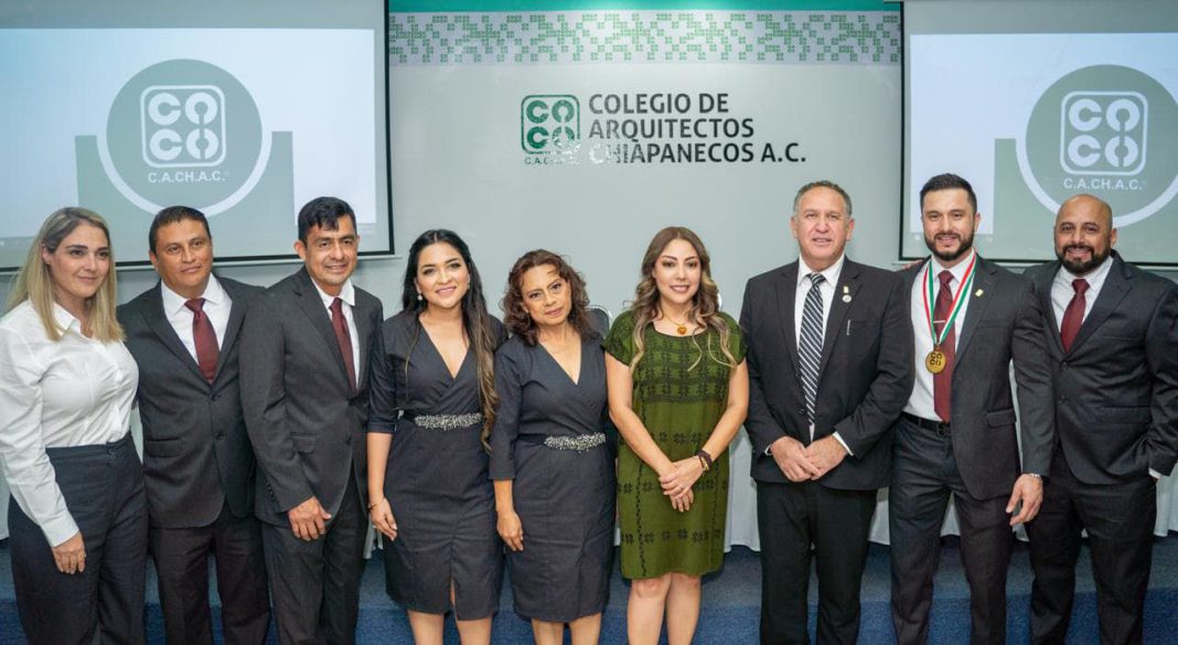 Tuxtla Gutiérrez, Chiapas; 10 de enero 2025.- En representación del gobernador del Estado, Eduardo Ramírez Aguilar, la secretaria de Infraestructura, Anakaren Gómez Zuart estuvo presente en la toma de protesta del Consejo Directivo 2025-2026 del Colegio de Arquitectos Chiapanecos A.C., (Cachac), presidido por Luis Daniel Monclova Hernández.