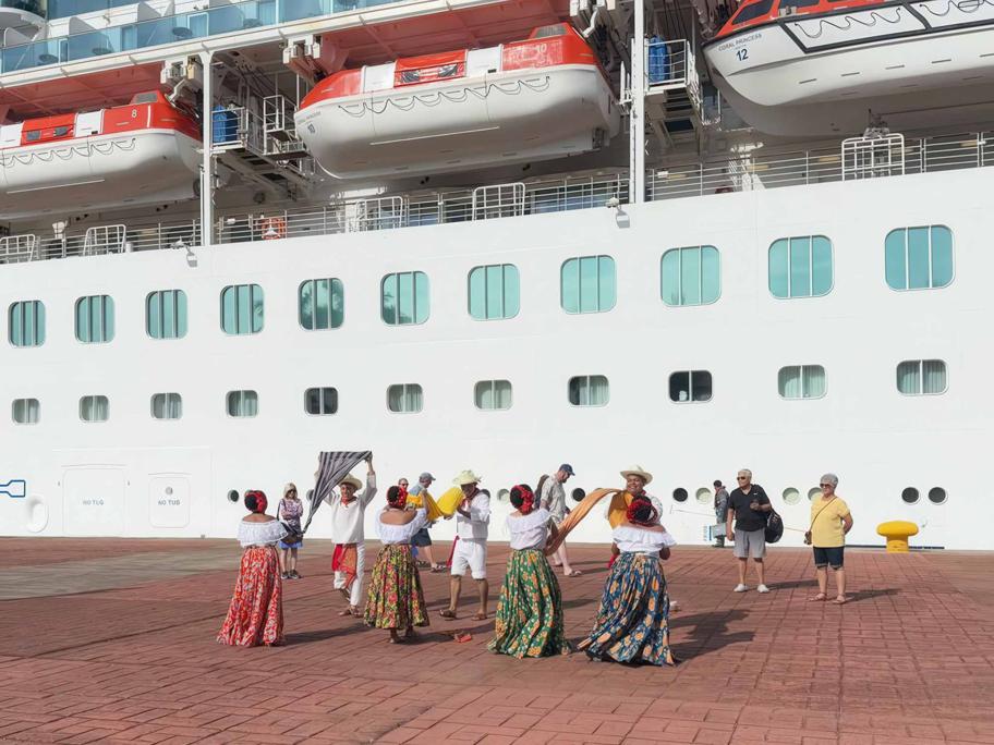 Para recibir a las y los visitantes, Puerto Chiapas preparó un espectáculo cultural con bailes folclóricos de la región y música de marimba, que amenizó la estancia de pasajeros y tripulantes en tierras chiapanecas.