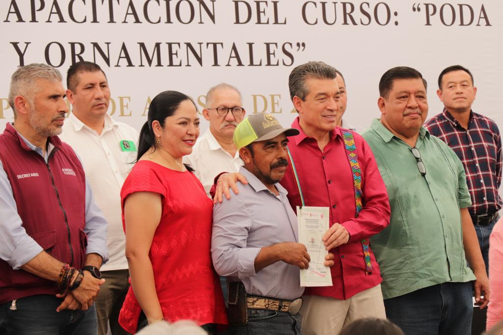 En gira de trabajo por la región Norte de Chiapas, con la presencia del gobernador del estado, Rutilio Escandón Cadenas, la directora general del Icatech, Fabiola Lizbeth Astudillo Reyes, realizó la entrega de constancias de capacitación del curso: “Poda de Árboles Frutales y Ornamentales”, a beneficiarios de la cabecera Municipal de Ixtapangajoya.