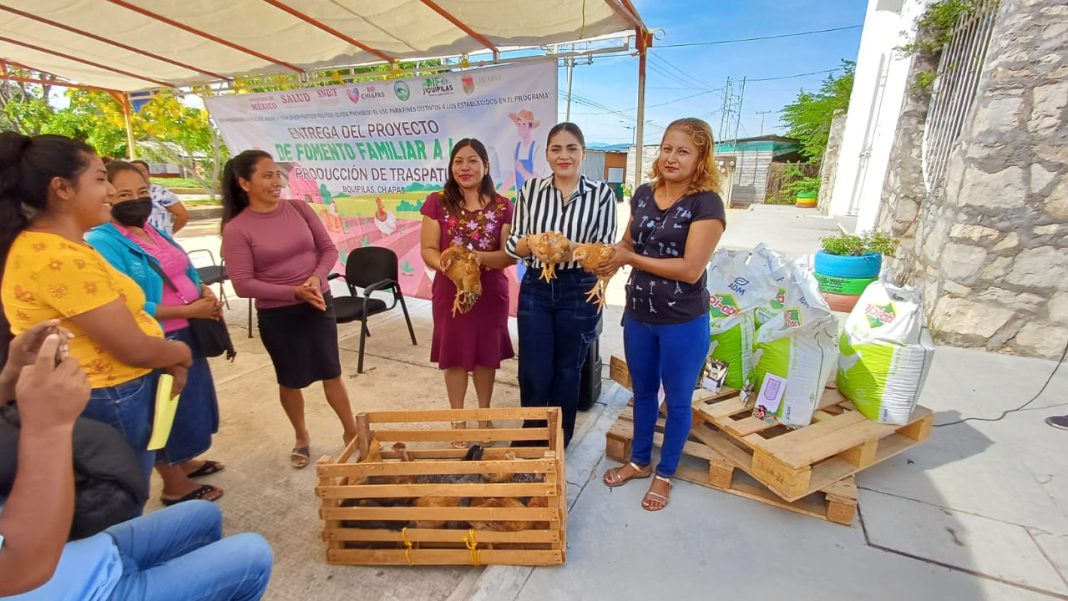 Jiquipilas, Chiapas. – Con el propósito de implementar acciones para fomentar la nutrición y la economía familiar de manera sustentable, la presidenta del sistema DIF Madely Montejo Maza entregó paquetes de fomento familiar a la producción de traspatio 2024.