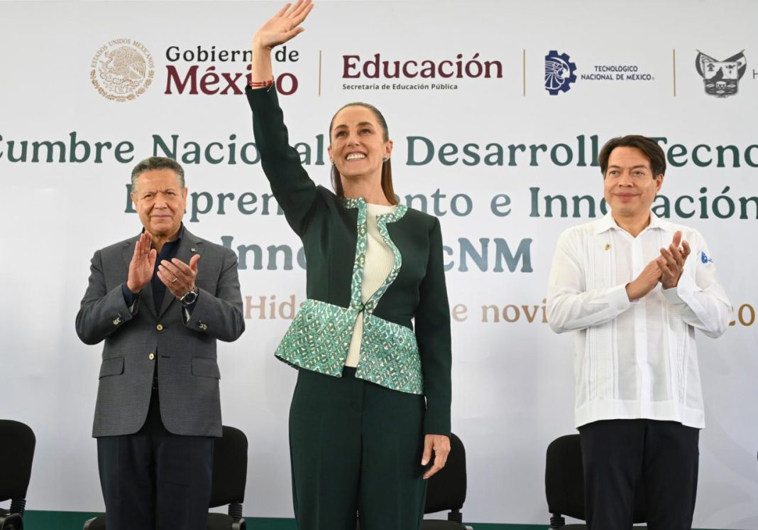 Pachuca, Hidalgo, 26 de noviembre de 2025.- En la Cumbre Nacional de Desarrollo Tecnológico, Emprendimiento e Innovación, InnovaTecNM 2025, la Presidenta Claudia Sheinbaum Pardo anunció la creación del Fondo InnovaTecNM que elegirá proyectos de estudiantes del Tecnológico Nacional de México (TecNM) para su desarrollo con el objetivo de hacer de México una potencia científica y tecnológica.