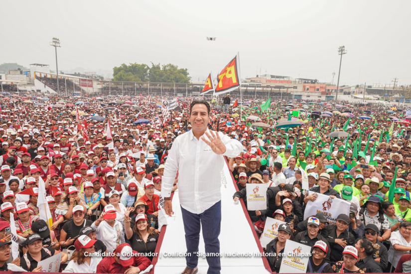 En plaza pública de Ocosingo, donde hizo extensiva su felicitación a todas las madres de Chiapas por su día, el candidato de la coalición más grande de la historia de la entidad consultó la propuesta ante el pueblo que llenó el estadio “Julio César Solórzano Paniagua”, quienes al unísono dieron su aprobación para la realización de dicha autopista en el 2025.
