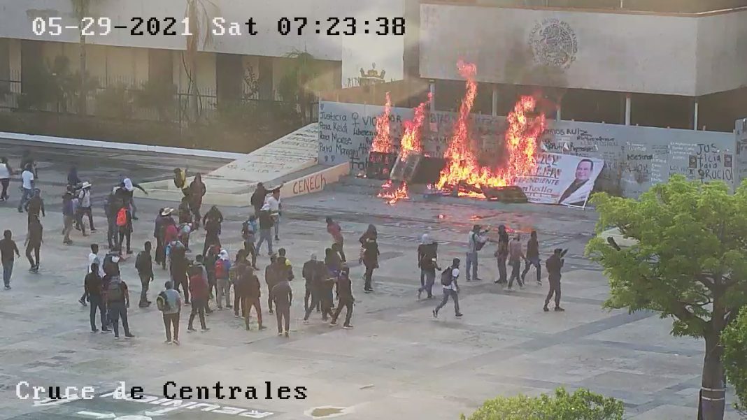 Nuevamente normalistas de la “Mactu” vandalizan Palacio de Gobierno, y bloquean accesos a la ciudad