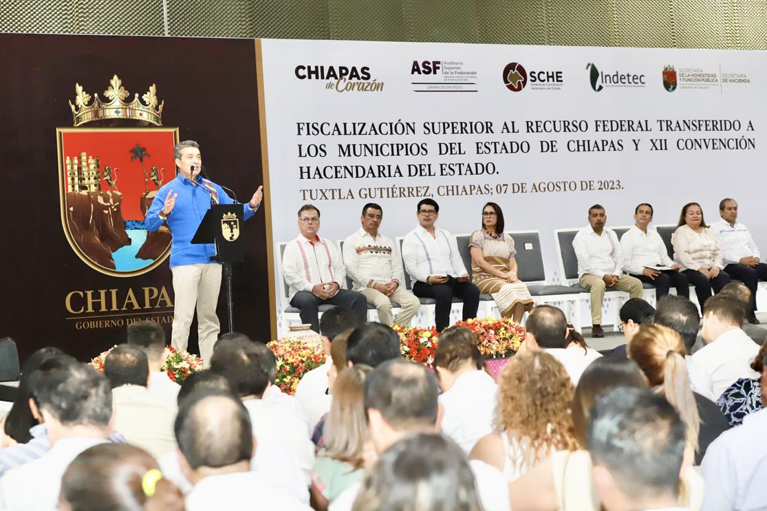 Al participar en la XII Convención Hacendaria del Estado, el gobernador Rutilio Escandón Cadenas destacó que hoy Chiapas tiene finanzas sanas y una administración pública ordenada, transparente, eficiente y con buenos resultados en la fiscalización del gasto público, gracias al establecimiento de buenas prácticas de rendición de cuentas, al combate a la corrupción y el trabajo en unidad entre los gobiernos Federal, Estatal y Municipal.