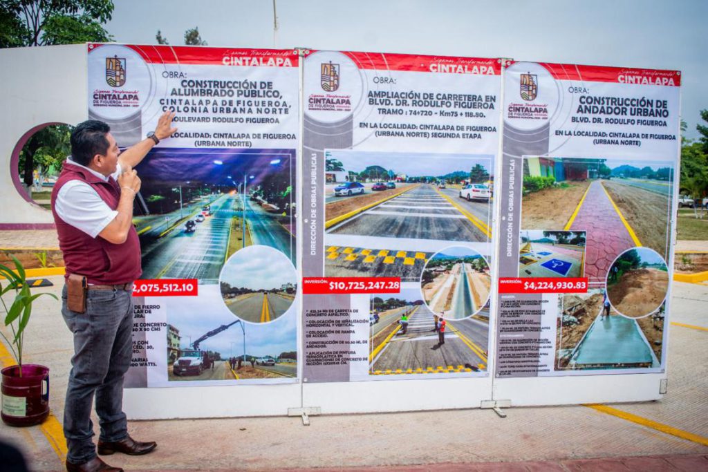 El alcalde entregó la ampliación de la carretera en el boulevard Rodulfo Figueroa, en el tramo km 74+720 al km 75+118, una obra que incluye andador peatonal y alumbrado público, con el objetivo de brindar mayor seguridad vial y facilitar la movilidad tanto de automovilistas como de peatones.