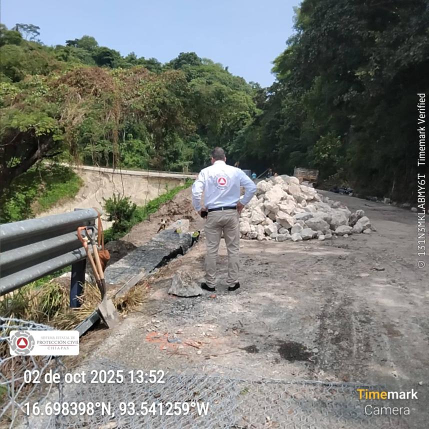 Protección Civil, verificó el socavón en el tramo carretero Ocozocoautla–Cintalapa