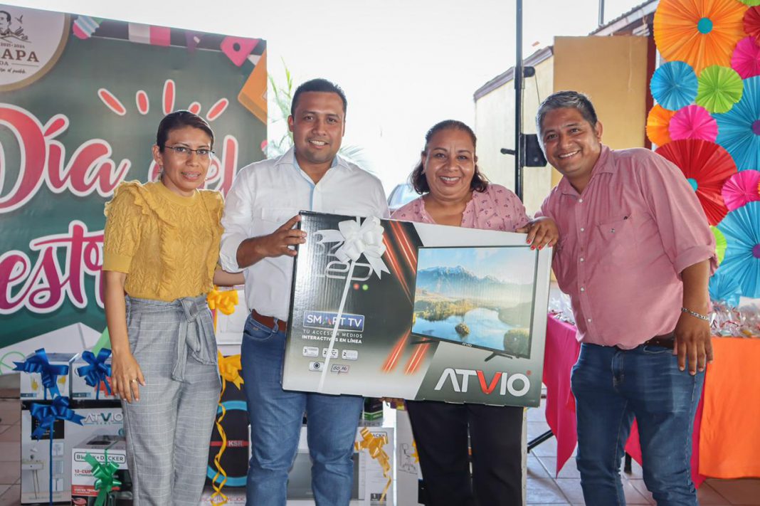 En este espacio, el Munícipe también entregó un merecido reconocimiento y un equipo de computo a la Profesora del Cebech Emilio Rabasa, Lizbeth Yaneth Rodríguez Cruz; por las excelentes estrategias educativas en línea que aplicó en la etapa fuerte de la pandemia del Covid.