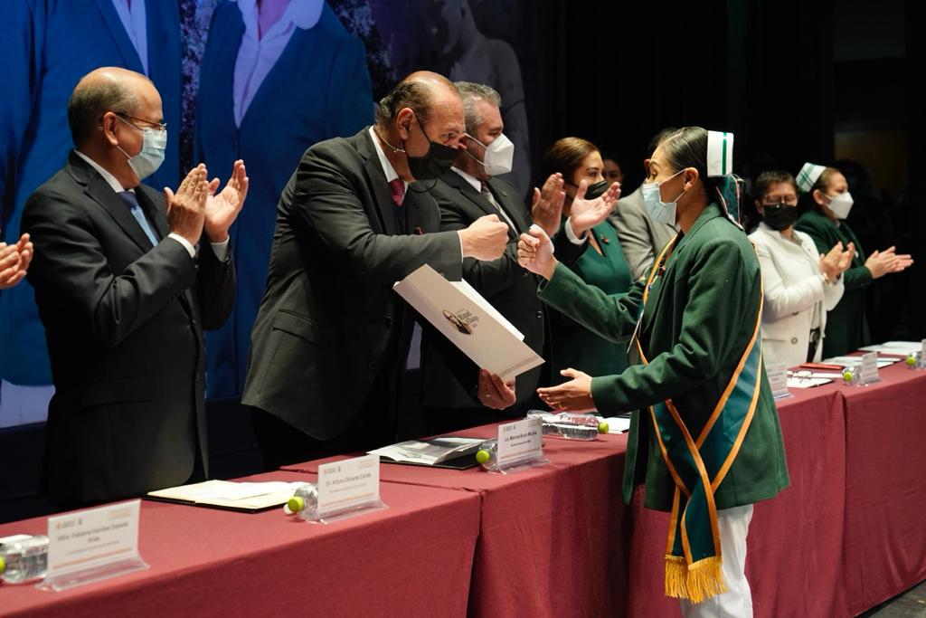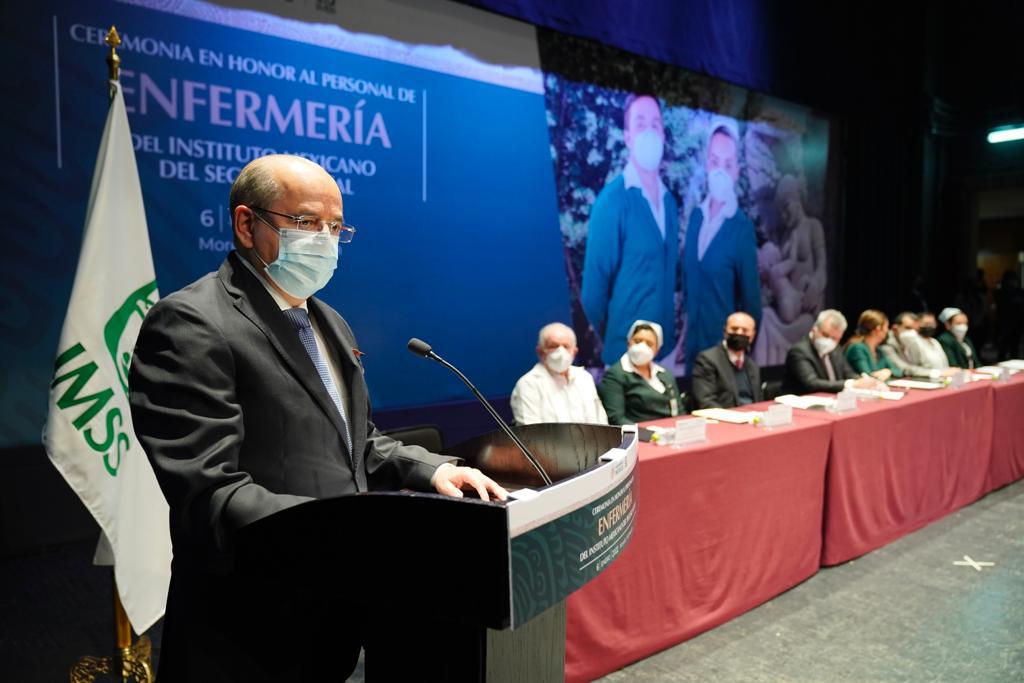 Subrayó que actualmente el trabajo del personal de Enfermería tiene una nueva dimensión y se revalorizó, sobre todo en los días y las horas de la pandemia y en el proceso de vacunación. “Para nosotros ha sido lo más parecido a una guerra y ustedes, hombres y mujeres, han sido los más fieles y férreos soldados que han defendido la salud de los derechohabientes”.