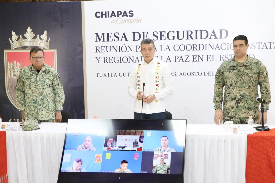 En el marco de la Mesa de Seguridad, que contó con la presencia de la secretaria de Igualdad de Género (Seigen), Cintia Xiomara Lorenzana Borrego, el mandatario reconoció el trabajo conjunto que se realiza para brindar bienestar y seguridad, así como garantizar el respeto de los derechos humanos y una vida libre de violencia a las niñas y mujeres de Chiapas.