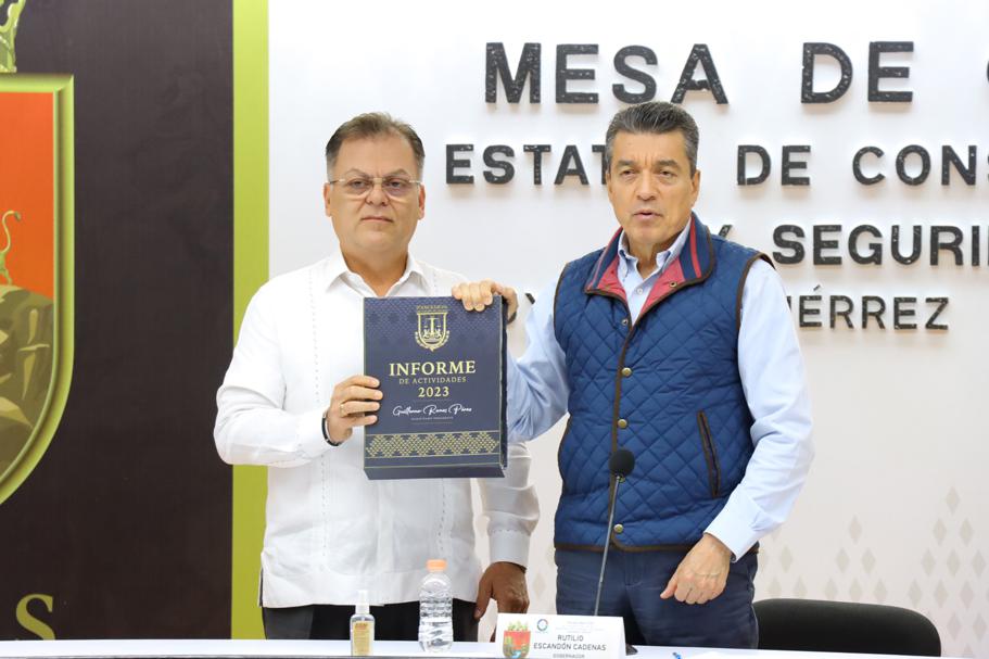 El gobernador Rutilio Escandón Cadenas recibió el informe del estatus que guarda la impartición de justicia en Chiapas, por parte del presidente del Poder Judicial del Estado, Guillermo Ramos Pérez, a quien felicitó y reconoció por el trabajo responsable, comprometido, honesto y transparente que ha establecido a favor de la paz, el bienestar, la justicia y el Estado de Derecho.