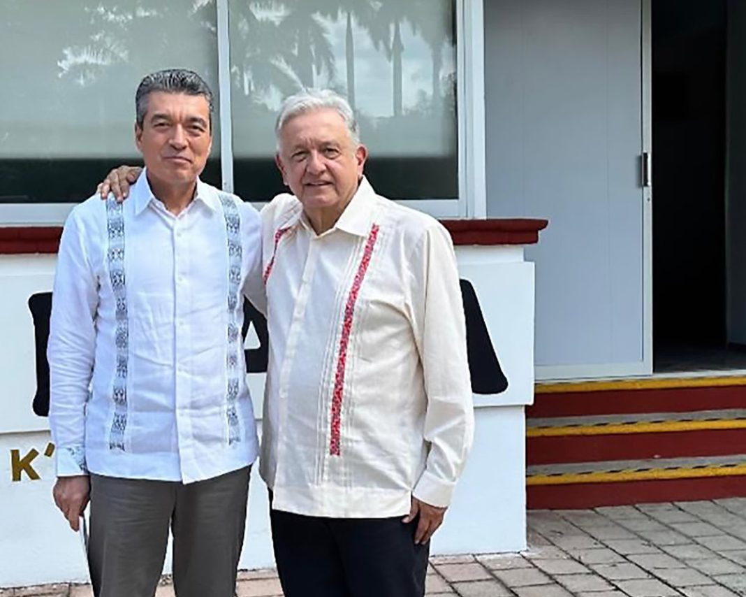 En este encuentro, realizado en las instalaciones de la delegación del Fondo Nacional de Turismo (Fonatur), el mandatario destacó la visión del presidente López Obrador por impulsar esta obra ferroviaria, que potencializará la economía, el comercio y el turismo; contribuirá a la conectividad regional, al progreso a los pueblos y privilegiará la preservación de la riqueza natural, histórica y cultural que caracteriza al Sur-Sureste ante México y el mundo.