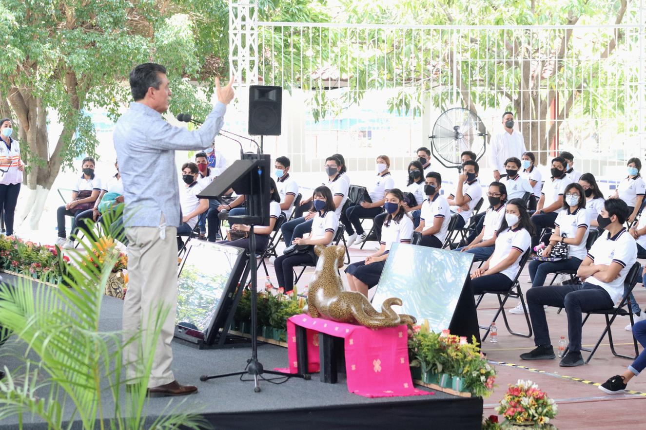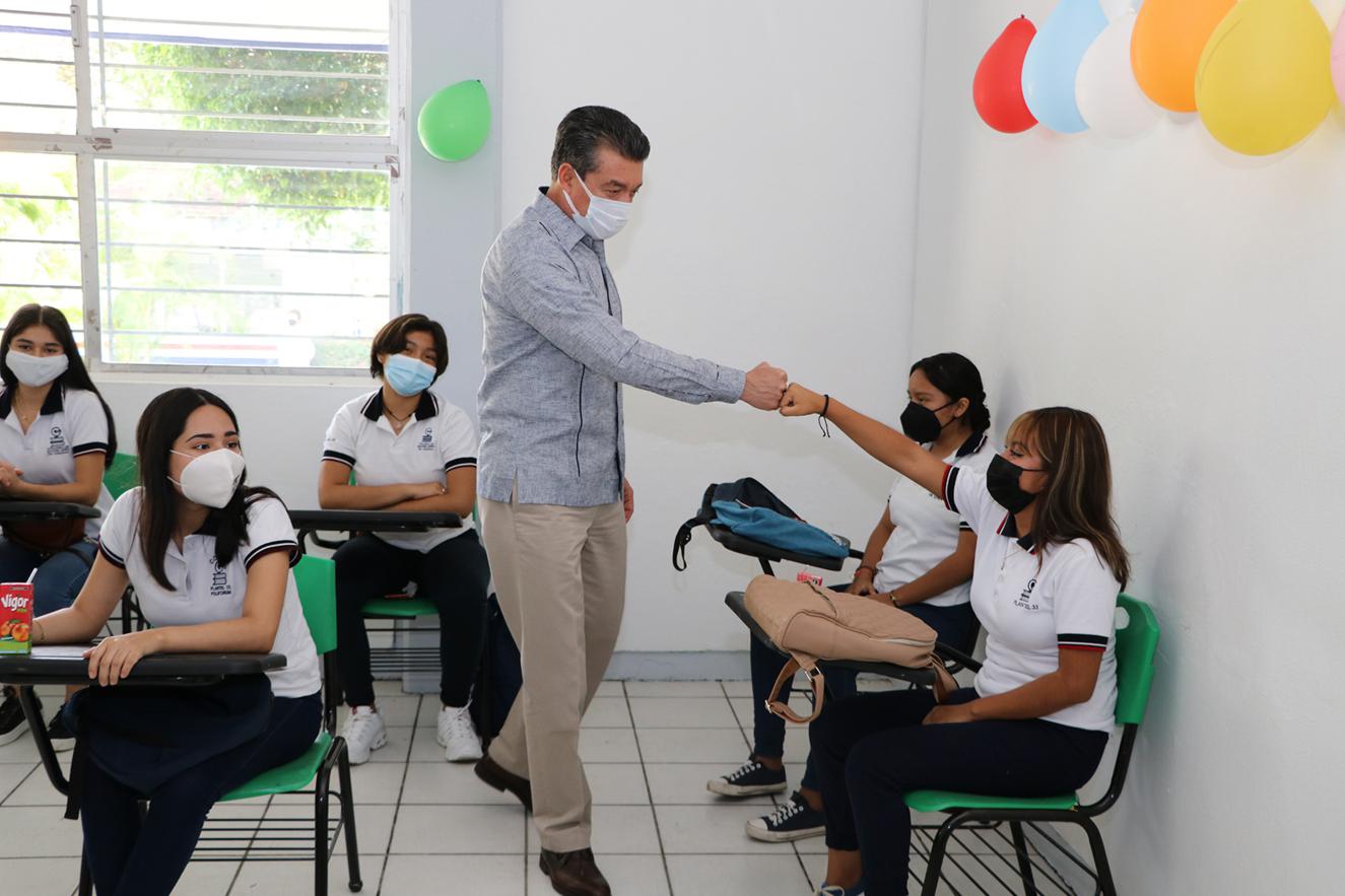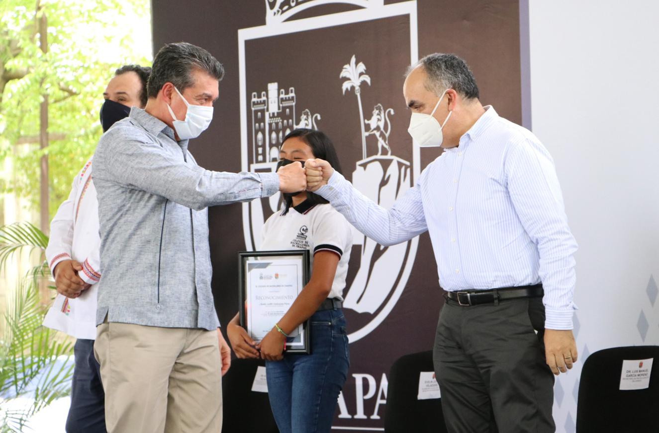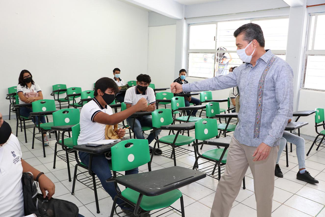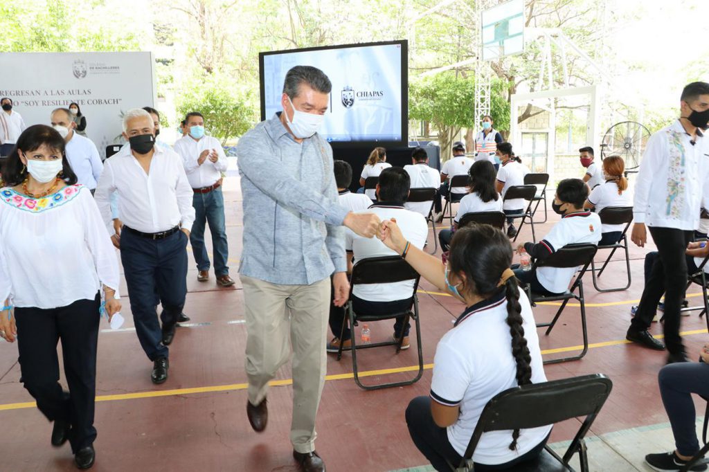 Luego de referir que este retorno es una señal de que Chiapas va bien en el combate a la pandemia de COVID-19, aseguró que también motiva a que las y los alumnos no bajen la guardia en los cuidados ni en los estudios, pues están en el momento de aprender todo lo que sus docentes les enseñan a fin de tener un mejor porvenir: “Tienen la fuerza y energía para sacar adelante lo que se propongan; ustedes ya no son el futuro, son el presente”.