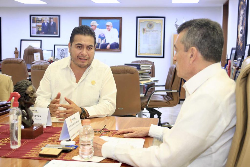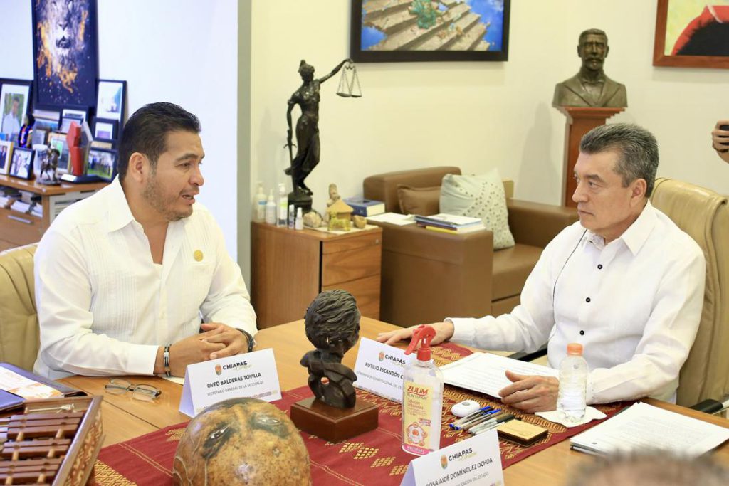 El gobernador Rutilio Escandón Cadenas sostuvo una reunión de trabajo con el secretario general de la Sección 40 del Sindicato Nacional de Trabajadores de la Educación (SNTE), Oved Balderas Tovilla.