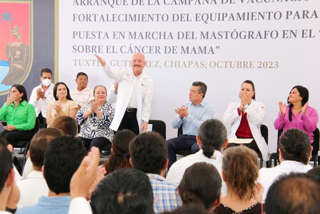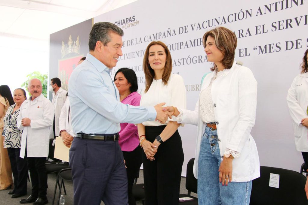 “Cuando empieza a hacer frío es cuando se da esta enfermedad respiratoria, y ya tenemos todas las vacunas para atender una necesidad tan apremiante de la salud y evitar que nos contagiemos. Todas las inversiones para atender de la mejor manera al pueblo de Chiapas en materia de salud van a continuar, pero lo fundamental es que no nos enfermemos y estemos prevenidos para mantener nuestra salud en óptimas condiciones”, apuntó.