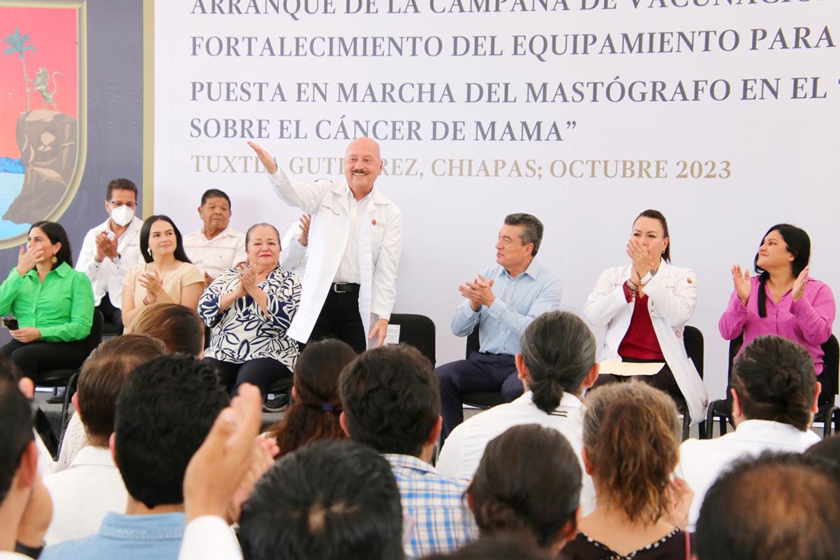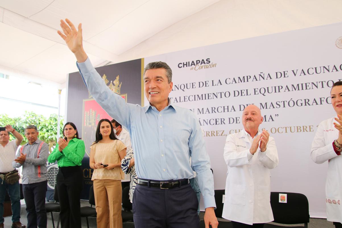 “Cuando empieza a hacer frío es cuando se da esta enfermedad respiratoria, y ya tenemos todas las vacunas para atender una necesidad tan apremiante de la salud y evitar que nos contagiemos. Todas las inversiones para atender de la mejor manera al pueblo de Chiapas en materia de salud van a continuar, pero lo fundamental es que no nos enfermemos y estemos prevenidos para mantener nuestra salud en óptimas condiciones”, apuntó.