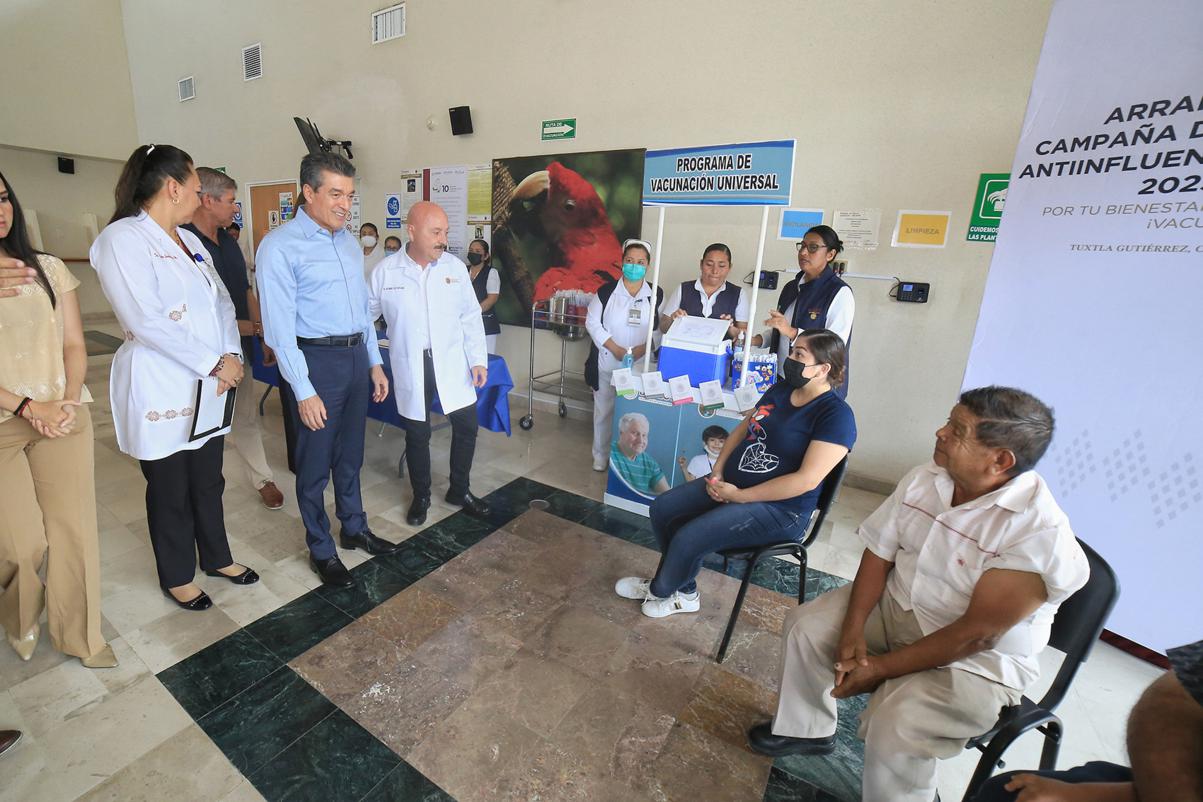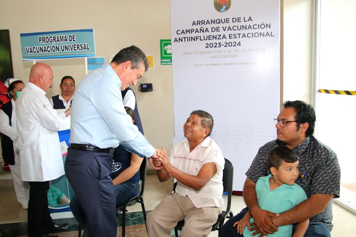 Desde el Hospital General “Dr. Jesús Gilberto Gómez Maza”, el gobernador Rutilio Escandón Cadenas arrancó la Campaña de Vacunación Antiinfluenza Estacional 2023-2024, que tiene como lema “Por tu bienestar y el de tu familia, ¡vacúnense!”, donde convocó a la población a aplicarse este medicamento para prevenir la influenza, enfermedad que puede ser mortal.