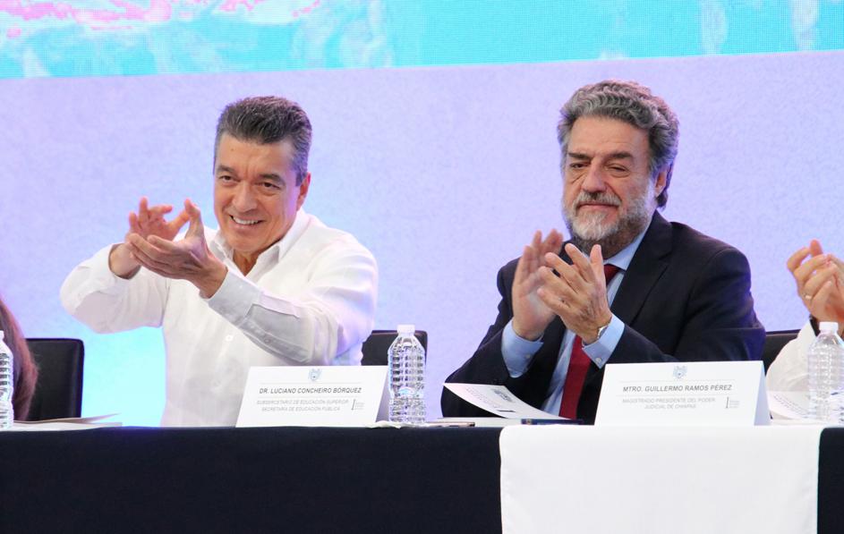 Asistieron: la presidenta de la Mesa Directiva del Congreso del Estado, Sonia Catalina Álvarez; el presidente del Poder Judicial, Guillermo Ramos Pérez; el presidente en turno de la Junta de Gobierno de la Unach, Francisco Guevara Hernández; estudiantes y docentes de esta universidad, rectores de universidades públicas y privadas, así como servidoras y servidores públicos.