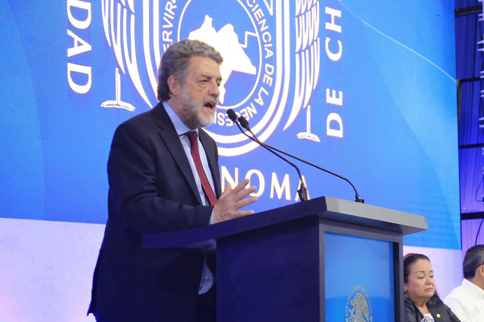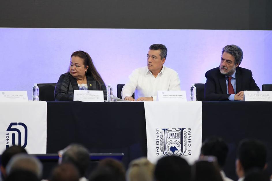 “Felicito el empeño y la pasión de docentes, directivos y toda la comunidad universitaria porque hoy la Unach ha retomado el papel de generar conocimiento y de contribuir a la transformación social. La Unach está por cumplir 50 años y estamos llamados a seguir trabajando en la búsqueda de la excelencia y seguir en la construcción de otro medio siglo de aporte al desarrollo educativo, científico y cultural de Chiapas y de México”, acotó.