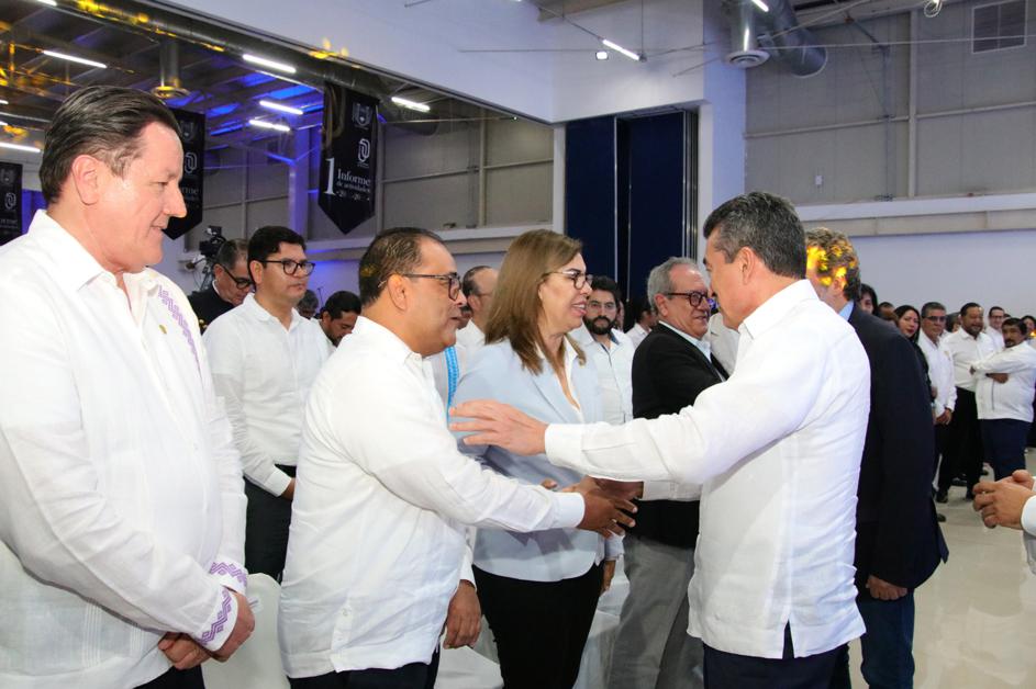 El gobernador Rutilio Escandón Cadenas asistió al Primer Informe de Actividades del rector de la Universidad Autónoma de Chiapas (Unach), Carlos Faustino Natarén Nandayapa, donde reiteró el respaldo a la máxima casa de estudios para que continúe creciendo y formando a más jóvenes en sus aulas.