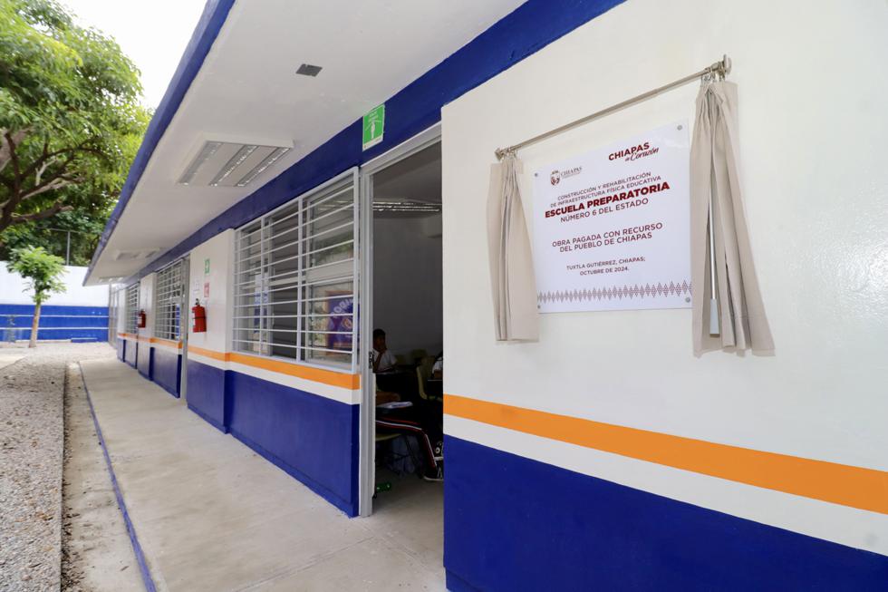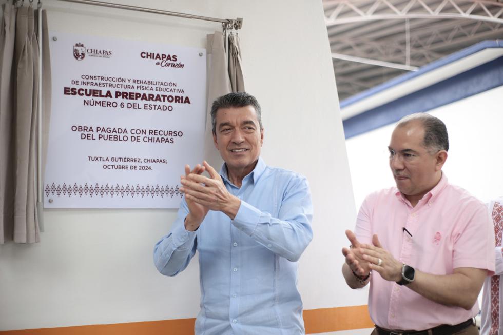 En la inauguración de infraestructura educativa de la Escuela Preparatoria Número 6 del Estado, en Tuxtla Gutiérrez, el gobernador Rutilio Escandón Cadenas destacó que después de muchos años de no recibir ningún apoyo, hoy es un plantel que cuenta con espacios modernos, seguros y funcionales, y las herramientas necesarias para que la comunidad escolar transite el proceso de enseñanza-aprendizaje en óptimas condiciones.