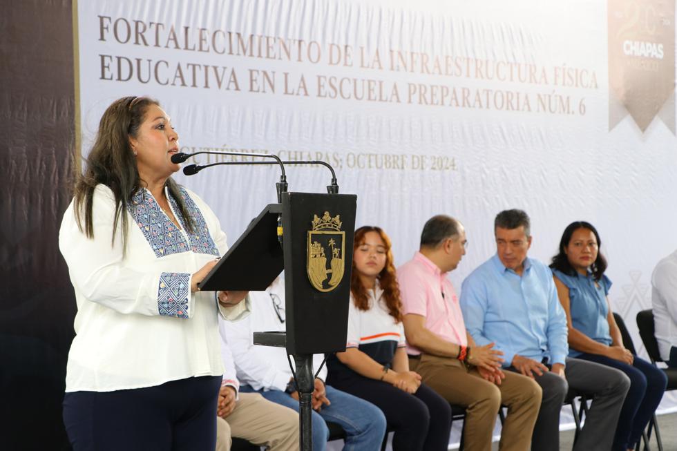 En tanto, el director general del Instituto de Infraestructura Física Educativa del Estado (Inifech), Enoc Gordillo Argüello, detalló que en dicho plantel se construyeron siete aulas didácticas y obras de exterior, se rehabilitaron los edificios y se entregó mobiliario. Informó que en este sexenio se han invertido más de 414 millones de pesos en 94 escuelas, de los cuales el 33 por ciento se destinó a 22 preparatorias estatales de la capital chiapaneca.
