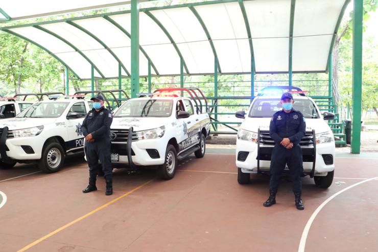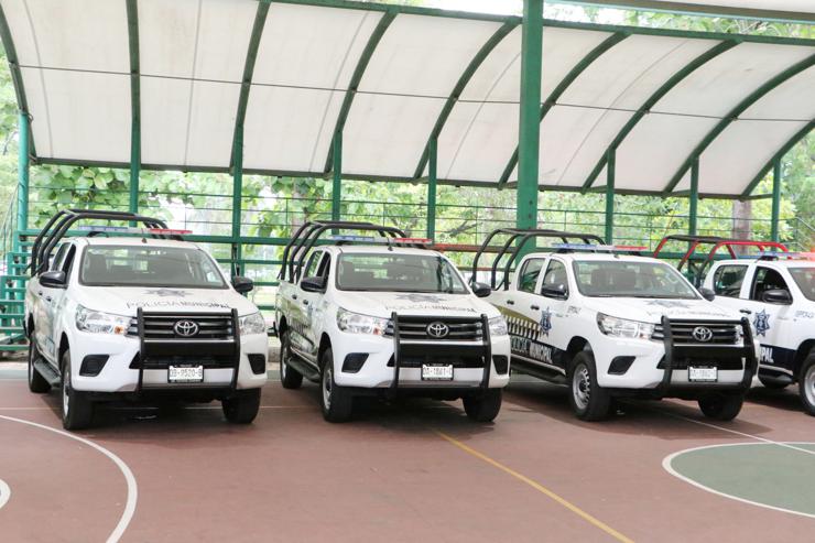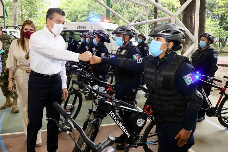 Detalló que se entregaron: 12 patrullas, 20 bicicletas, 385 uniformes, 40 juegos de equipamiento táctico, refacciones y baterías para radios, además de 52 rifles semiautomáticos; dijo que con esas acciones se materializan los acuerdos que se toman en las mesas de seguridad, que aunado a una estrategia efectiva se traduce en tranquilidad y certeza par la población.