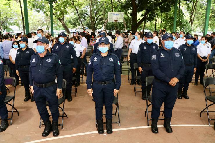 A su vez, la presidenta municipal de Tapachula, Rosa Irene Urbina Castañeda, refirió que se trabaja en cumplimiento con el modelo nacional de policía de justicia cívica, al tiempo de resaltar que, con la profesionalización y equipamiento de la Secretaría de Seguridad Pública y Protección Ciudadana Municipal, se le da certeza a las y los tapachultecos con una corporación más efectiva y profesional.