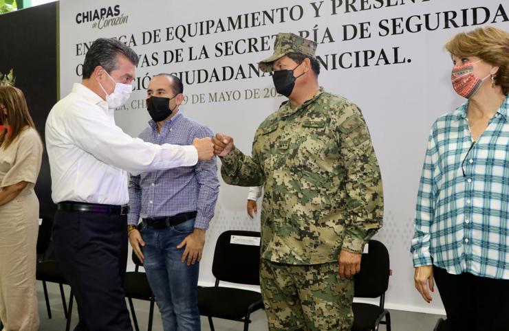 Durante la entrega de equipamiento para el fortalecimiento de la seguridad del municipio de Tapachula, el gobernador Rutilio Escandón Cadenas destacó que como resultado de las inversiones en esta materia y al esfuerzo conjunto entre las autoridades federales, estatales y municipales, Chiapas se ha consolidado como una entidad segura, atractiva y confiable para vivir, visitar e invertir.