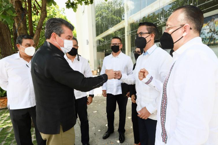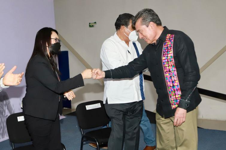 Asistieron: el director nacional de las Juzgadoras y Juzgadores Federales, Froylán Muñoz Alvarado; la jueza de Distrito adscrita al Tribunal Federal Laboral de Asuntos Individuales en el Estado, Griselda Marisol Vázquez García; el presidente del Tribunal Superior de Justicia, Juan Óscar Trinidad Palacios; y el diputado Aarón Yamil Melgar Bravo, presidente de la Junta de Coordinación Política del Congreso del Estado.