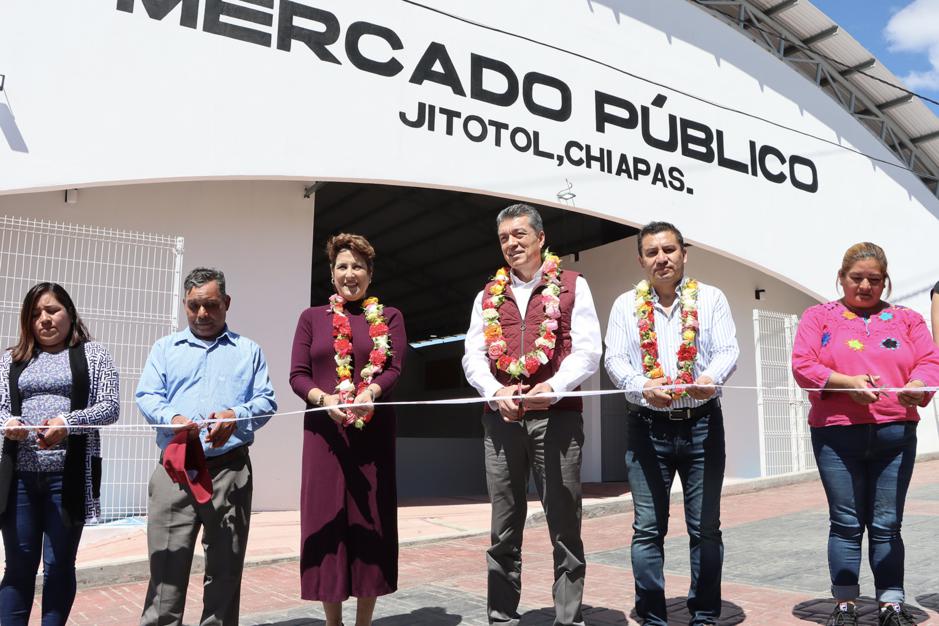 En la inauguración del Mercado Público Municipal del municipio de Jitotol, el gobernador Rutilio Escandón Cadenas destacó que esta obra prioritaria y de alto impacto social contribuirá al fortalecimiento de las actividades económicas y comerciales, a la generación de empleos directos e indirectos, al bienestar y al crecimiento del índice de desarrollo humano de las comunidades locales y de la región.