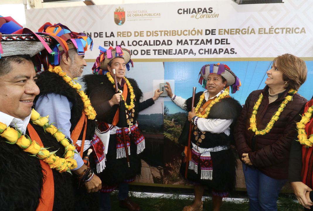En la comunidad de Matzam, municipio de Tenejapa, el gobernador Rutilio Escandón Cadenas inauguró la instalación de la red de distribución de energía eléctrica y la construcción de infraestructura en la Escuela Primaria “Álvaro Obregón”, donde refrendó el compromiso de seguir invirtiendo en todos los pueblos indígenas de Chiapas y sus comunidades.
