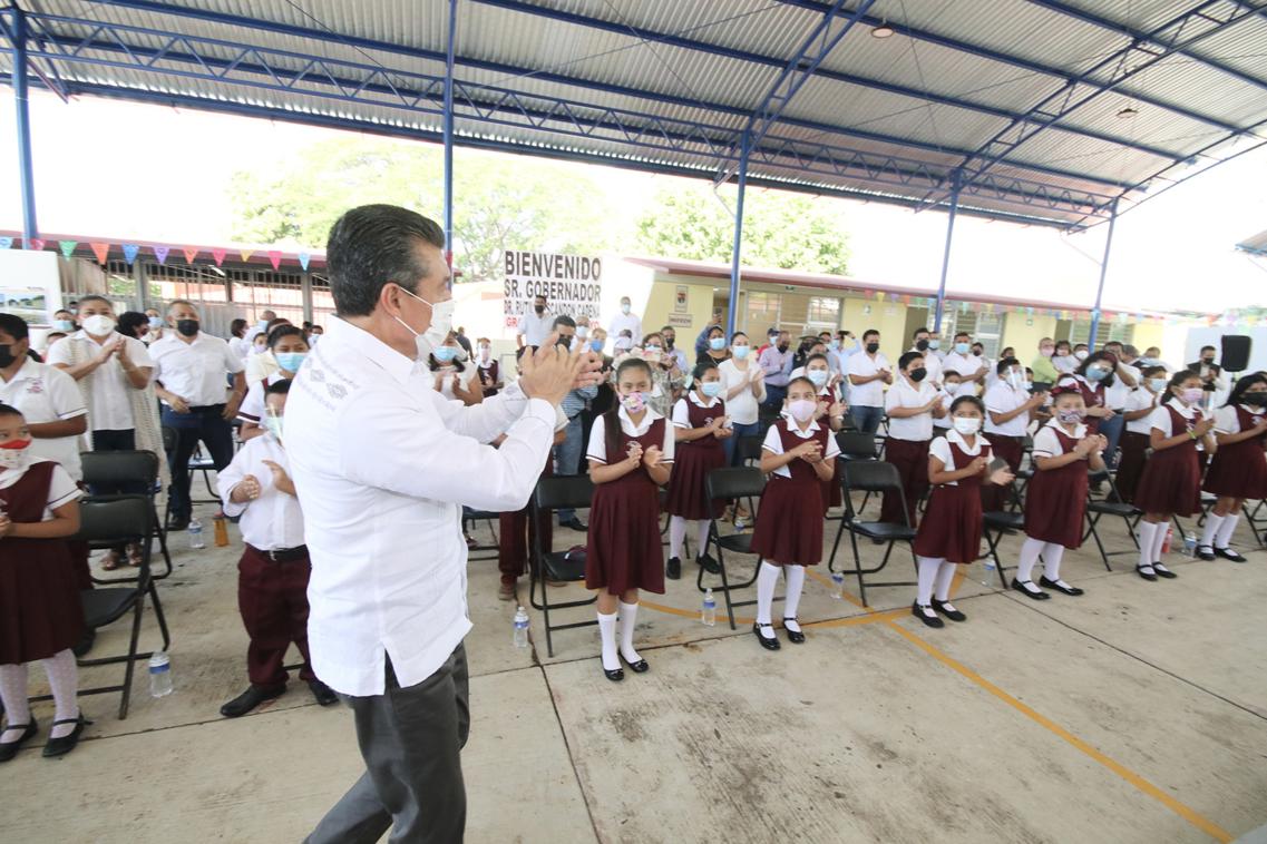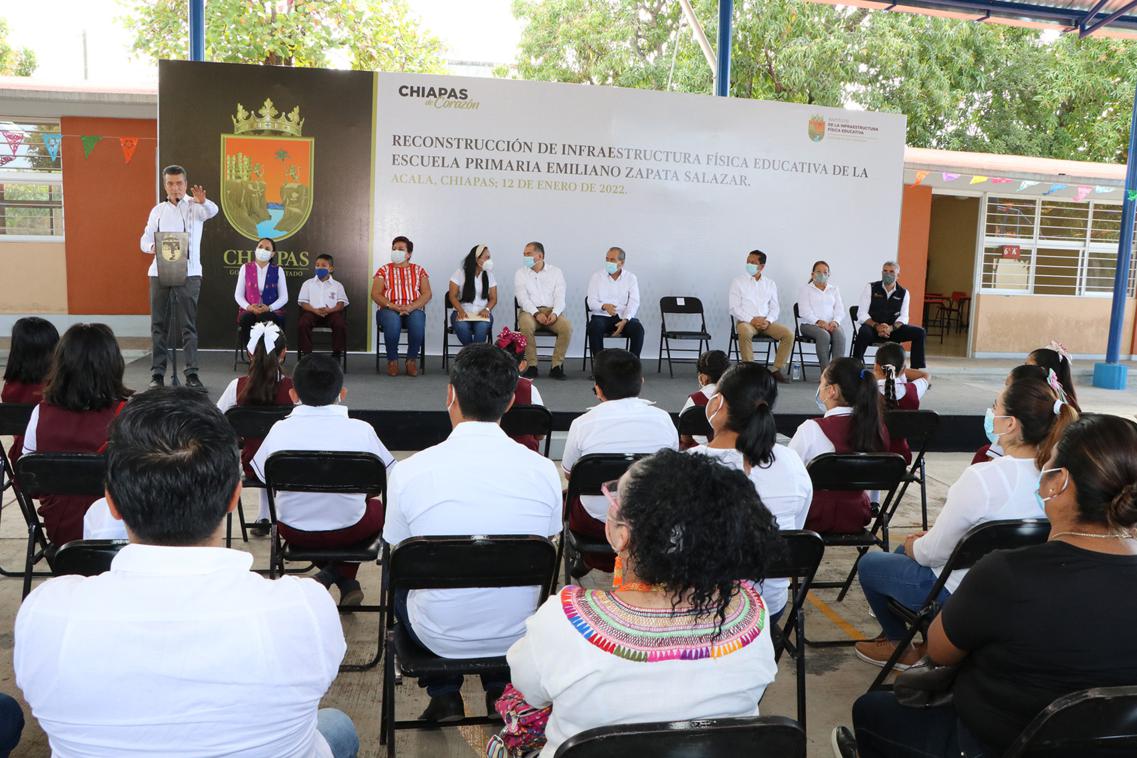 En cumplimiento a las políticas públicas orientadas a garantizar instituciones educativas seguras, dignas y de calidad a las y los estudiantes de Chiapas, el gobernador Rutilio Escandón Cadenas inauguró la reconstrucción de la infraestructura física educativa de la Escuela Primaria “Emiliano Zapata Salazar”, en el municipio de Acala, la cual no había recibido el mantenimiento adecuado desde hace más de 70 años.