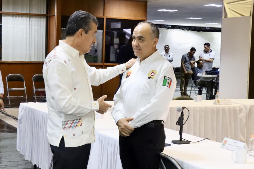 En tanto, el secretario de Protección Civil, Luis Manuel García Moreno, informó que Chiapas está en fase de prevención y en alerta por el frente frío número 8 que traerá lluvias intensas en los próximos días y por la tormenta tropical Pilar, por la cual se pueden registrar rachas de viento de hasta 120 km/h. Dijo que las temperaturas máximas tendrán un descenso de cinco grados centígrados, por lo que se debe estar muy atentos con la población más vulnerable.