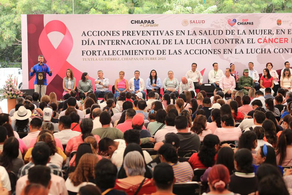 En el marco del Día Internacional de la Lucha Contra el Cáncer de Mama, el gobernador Rutilio Escandón Cadenas puso en marcha las acciones preventivas en la salud de la mujer, bajo el lema “Cáncer de mama: la prevención, detección temprana y el tratamiento oportuno salva vidas”, por lo que reiteró el llamado a la población a cuidar y atender su salud como un asunto prioritario y a ser promotores activos de una vida saludable.