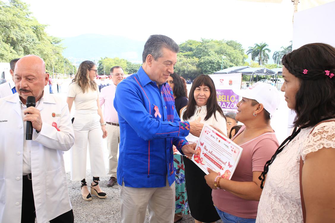 En tanto, Gabriela Pérez Grajales, sobreviviente del cáncer de mama, brindó su testimonio sobre esta mortal enfermedad y agradeció al gobernador y a su equipo de trabajo por desplegar las campañas de detección oportuna, las cuales, dijo, pueden salvar la vida de mucha gente si se aprovechan a tiempo.