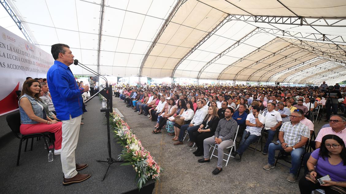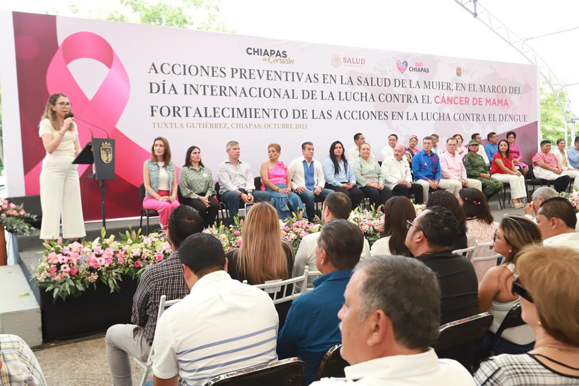En el marco del Día Internacional de la Lucha Contra el Cáncer de Mama, el gobernador Rutilio Escandón Cadenas puso en marcha las acciones preventivas en la salud de la mujer, bajo el lema “Cáncer de mama: la prevención, detección temprana y el tratamiento oportuno salva vidas”, por lo que reiteró el llamado a la población a cuidar y atender su salud como un asunto prioritario y a ser promotores activos de una vida saludable.