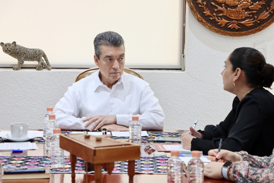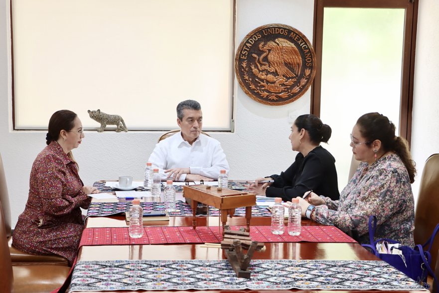 El gobernador Rutilio Escandón Cadenas sostuvo una reunión con la subsecretaria para América Latina y el Caribe de la Secretaría de Relaciones Exteriores (SRE), Laura Elena Carrillo Cubillas, donde refrendaron la voluntad de continuar trabajando de manera conjunta, desde sus respectivas competencias, en pro de la paz, estabilidad y desarrollo sostenible en la región.