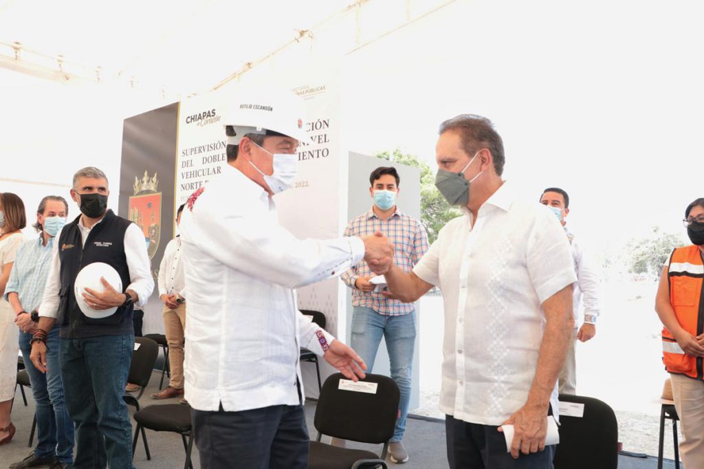 El gobernador Rutilio Escandón Cadenas encabezó la supervisión del doble Paso a Desnivel Vehicular del Libramiento Norte Poniente en las intersecciones con el Boulevard Juan Crispín y Boulevard Los Laguitos, donde destacó que, además de mejorar la movilidad vehicular y la imagen urbana, esta obra de alto impacto social fortalecerá la economía y contribuirá al progreso de Tuxtla Gutiérrez y de los municipios que conforman la región Metropolitana.