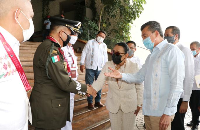 Asimismo, la titular del Secretariado Ejecutivo del Sistema Nacional de Seguridad Pública, Clara Luz Flores Carrales; el comandante de la Guardia Nacional, Luis Rodríguez Bucio; el director general del Centro Nacional de Inteligencia, Audomaro Martínez Zapata; los representantes de la 16 Región Naval, Roberto Carlos Ávila Ramos y de la VII Región Militar, Everardo Manjarrez Silva; así como las y los titulares de Seguridad Pública de Campeche, Oaxaca, Quintana Roo, Tabasco, Veracruz y Yucatán.