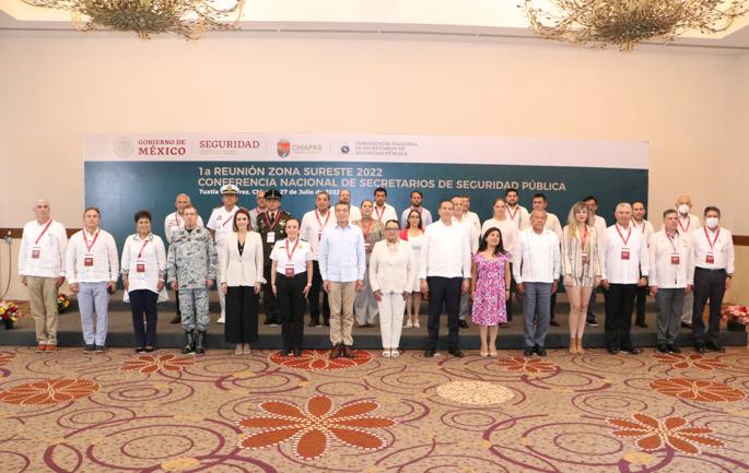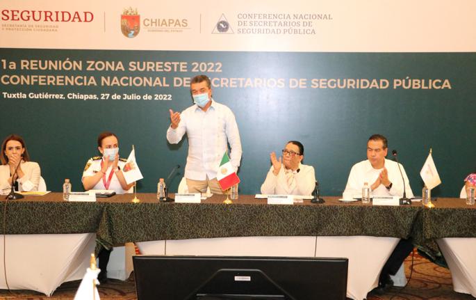 En la 1ª Reunión Regional de la Zona Sureste 2022 de la Conferencia Nacional de Secretarios de Seguridad Pública, a la que asistió la secretaria de Seguridad y Protección Ciudadana, Rosa Icela Rodríguez Velázquez, el gobernador Rutilio Escandón Cadenas destacó que la función del Estado de brindar seguridad pública mediante los tres órdenes de gobierno, está dando resultados positivos, por ello su gobierno está alineado a dicha estrategia nacional.