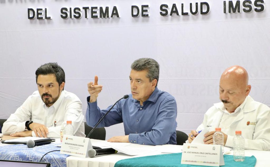 El gobernador Rutilio Escandón Cadenas y el director general del Instituto Mexicano del Seguro Social (IMSS), Zoé Robledo Aburto, encabezaron la reunión de seguimiento para la federalización del Sistema de Salud IMSS-Bienestar, donde se dieron a conocer resultados en cuanto a diagnósticos y necesidades de las unidades médicas en el estado.