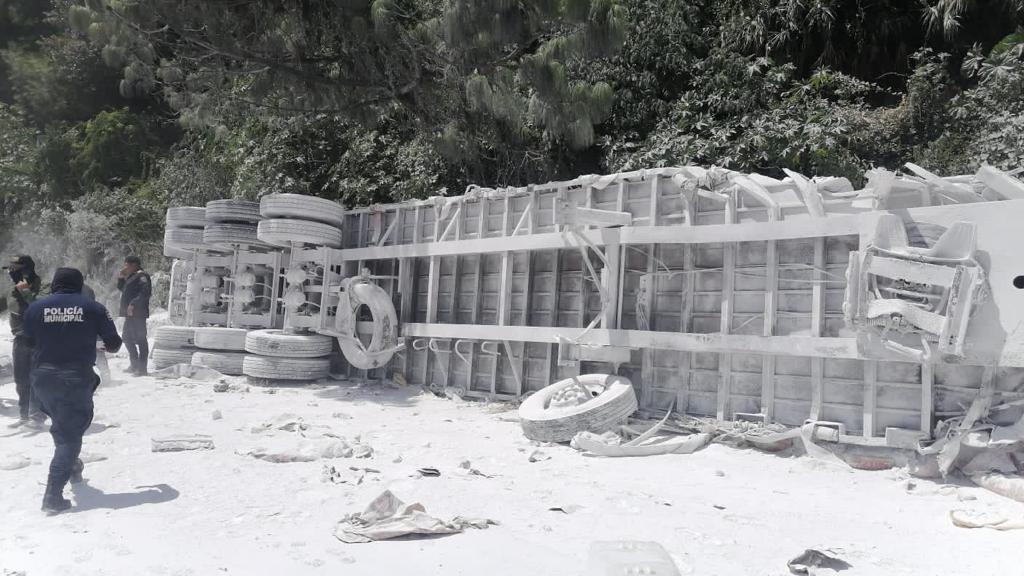 El suceso derivó de la volcadura de un tráiler cargado de calhidra, el cual presentó falla en sus frenos impactándose contra varios vehículos.