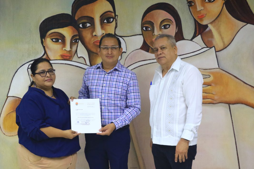 Tuxtla Gutiérrez.- La directora de Educación Superior, Xóchitl Clemente Parra y el subsecretario de Educación estatal, Pablo Velázquez Vázquez, en representación de la secretaria de Educación, Rosa Aidé Domínguez Ochoa, entregaron este jueves, en la sala de juntas de la dependencia, el nombramiento como nuevo Director de la Escuela Normal Superior de Chiapas