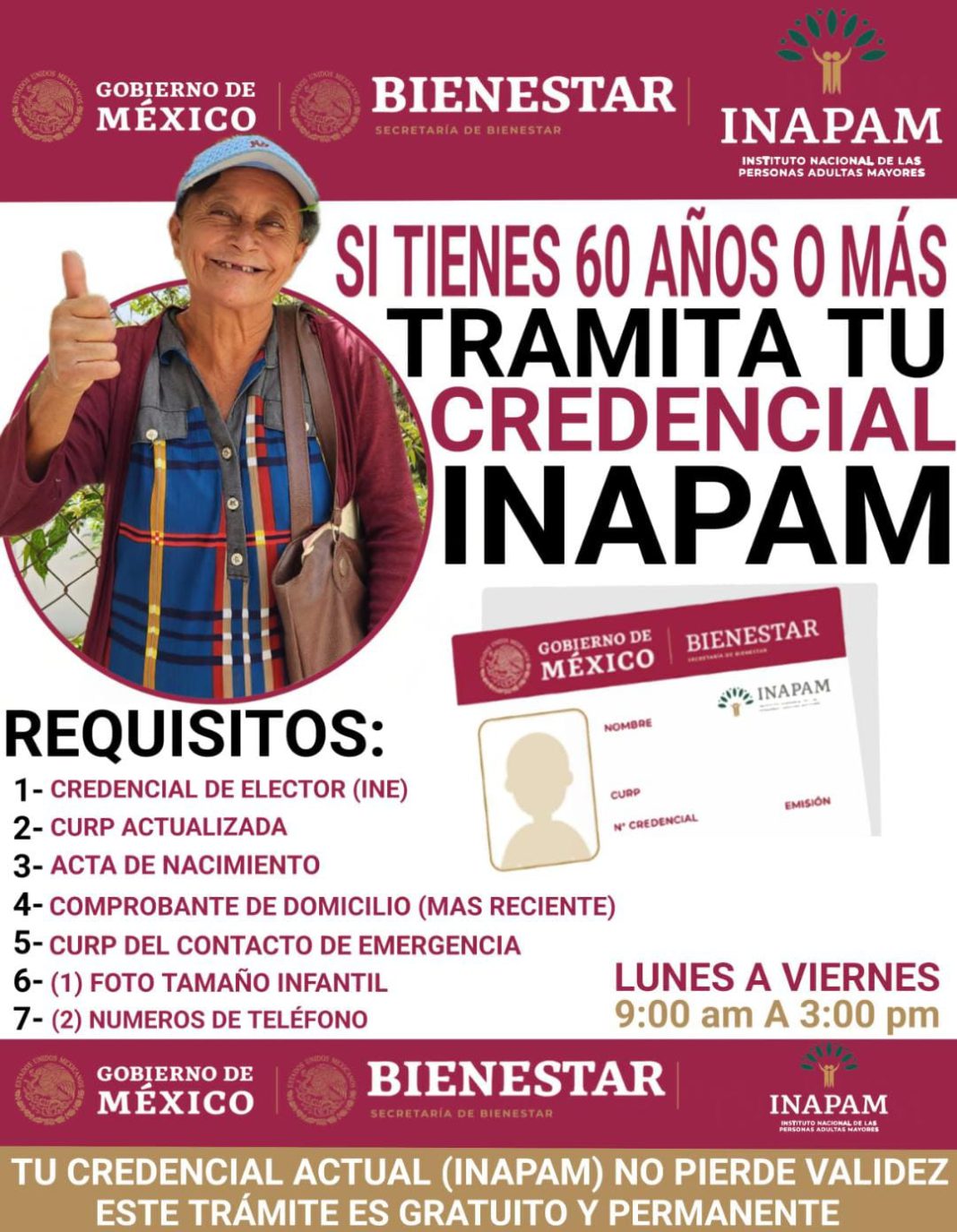 ¿Tienes 60 años o más? Solicita tu credencial del Instituto Nacional de las Personas Adultas Mayores (INAPAM) con la que podrás disfrutar de los múltiples beneficios que brinda el Instituto.