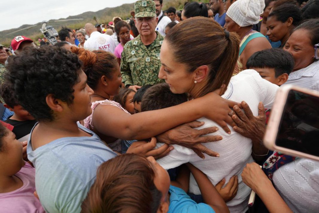Santiago Pinotepa Nacional, Oaxaca, 20 de junio de 2025.- Luego de realizar un recorrido de supervisión en comunidades afectadas en Oaxaca por el paso del huracán Erick, la Presidenta de México, Claudia Sheinbaum Pardo, destacó que siempre estará cerca de la gente y por ello se comprometió a garantizar alimentación, agua potable y atender los daños en viviendas que dejó el fenómeno meteorológico.