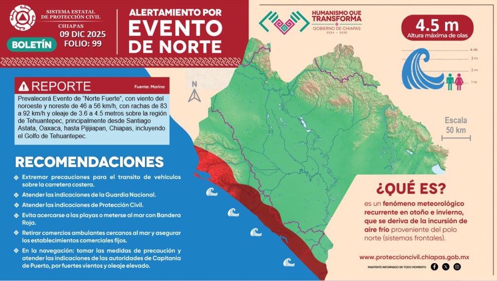 De igual forma prevalecerá evento de “Norte Fuerte” con fuertes vientos.