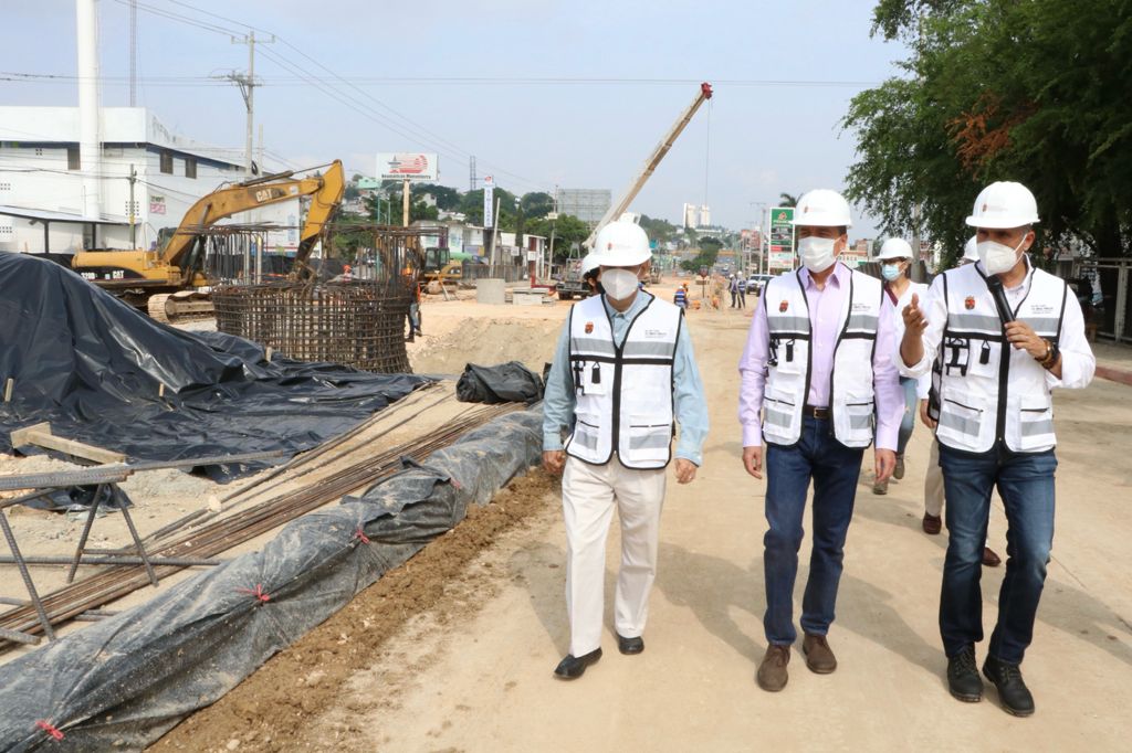 A fin de mantener una supervisión estricta en la obra del paso a desnivel que se construye en el Libramiento Sur y 11 Poniente de Tuxtla Gutiérrez, autoridades a cargo de esta infraestructura y representantes de colegios de la industria de la construcción realizaron un recorrido para verificar que se cumpla con los lineamientos establecidos en su edificación, principalmente, con lo dispuesto en la Ley Estatal de Protección Civil.