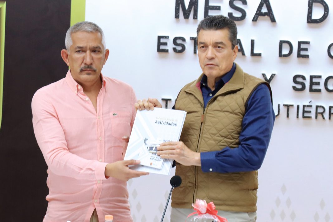 Al destacar las acciones en materia de procuración de justicia, programas de prevención y atención integral para las y los chiapanecos, el fiscal general del Estado, Olaf Gómez Hernández, realizó la entrega del Informe Anual de Actividades 2023 al gobernador Rutilio Escandón Cadenas, en el marco de la Mesa de Coordinación Estatal para la Construcción de la Paz y la Seguridad, efectuada en la ciudad de Tuxtla Gutiérrez.